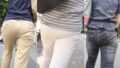まん丸の美巨尻にパンティーのクロッチラインを浮かべるママさんたち…